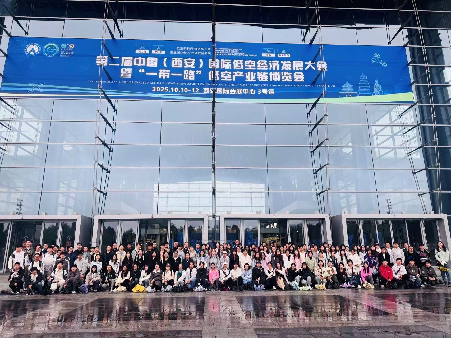 作为落实国家“培育壮大低空经济战略性新兴产业”战略部署的重要实践平台,10月10日至12日,第二届中国(西安)国际低空经济发展大会在西安国际会展中心盛大启幕。为帮助2025级本科新生提前对接产业前沿、建立专业认知,10月12日上午,学院组织2025级本科生赴大会进行专业实践活动,学院院长雷宏振,商业智能与数据科学系教师王国弘、兰娟丽、王钰莹,2025级本科生辅导员谢继涛及全体2025级本科生共同参与,在这场低空经济领域的国际盛会中开启了专业学习的“实践第一课”。