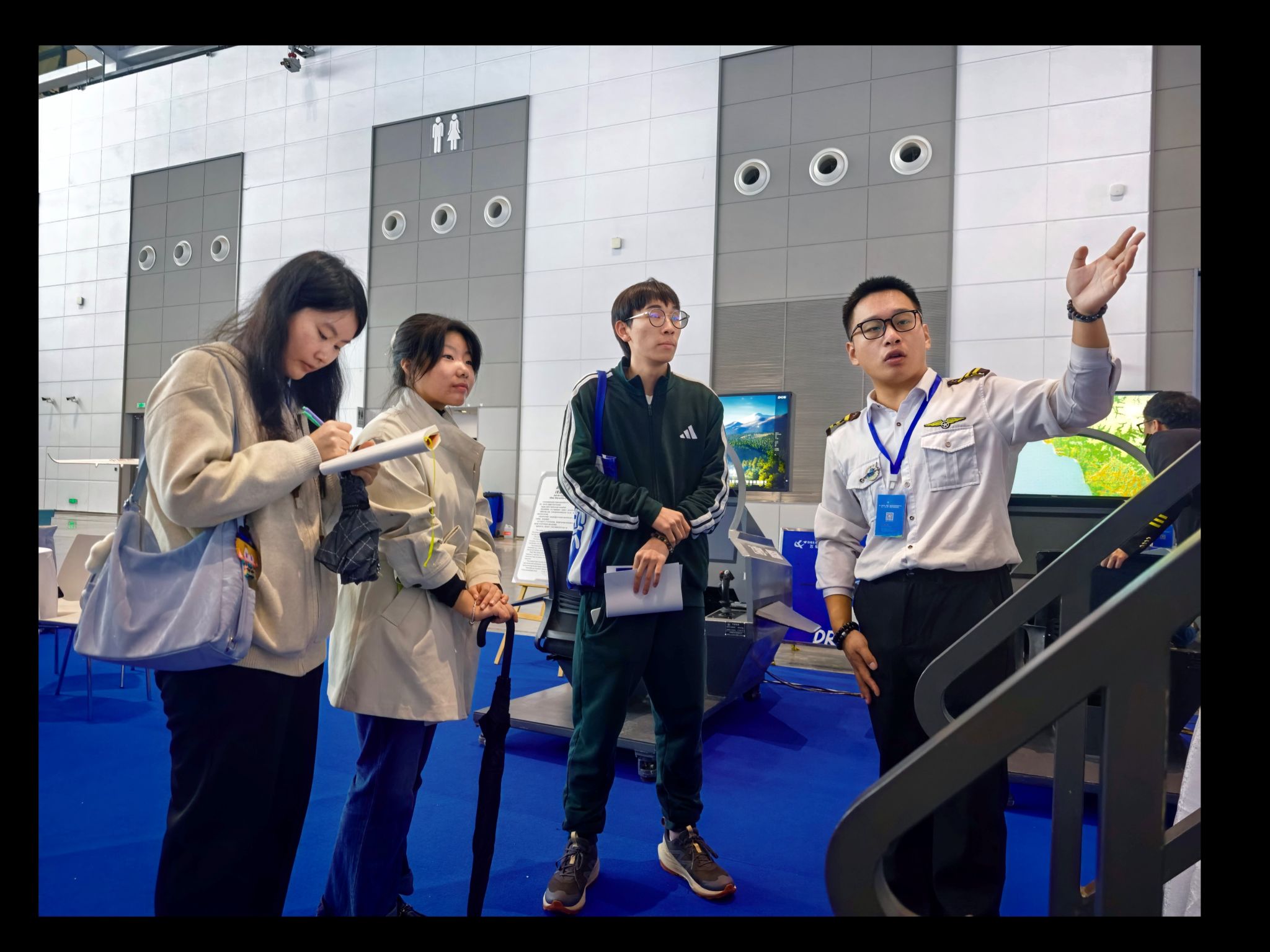 在互动体验区,同学们切身体验高仿真飞行模拟器,通过操作摇杆、调整参数,模拟直升机在城市低空巡航、应急救援物资投送等场景,亲身感受飞行操控的精准要求;在无人机实操区域,同学们在专业人员的指导下,完成了无人机的起飞、悬停、定点降落等基础操作。