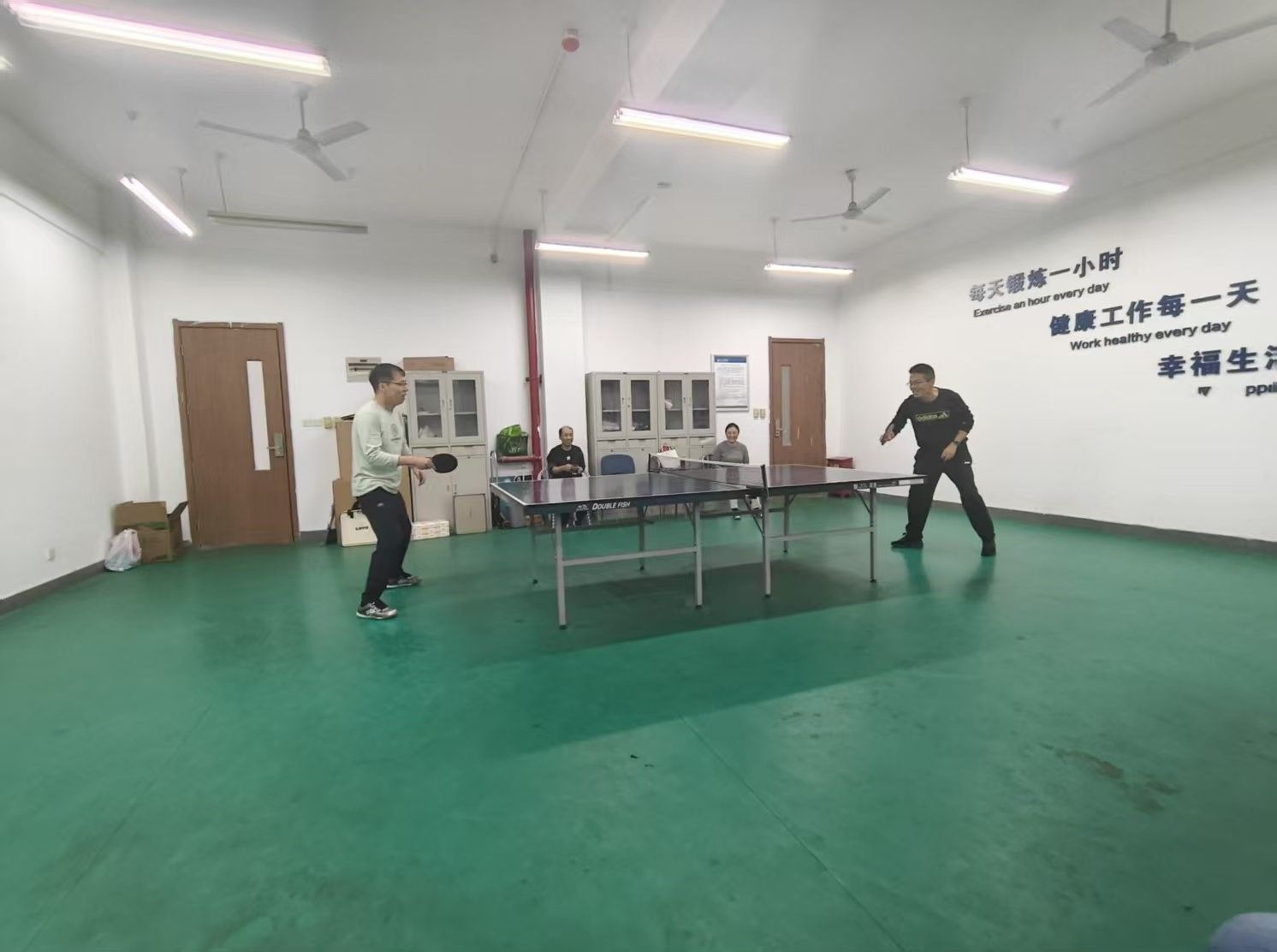 比赛采用“选拔赛+趣味性”的赛制设计:单打项目(男单、女单)通过小组循环赛与淘汰赛结合的方式决出胜负,既保证公平性,又增强竞技性。赛场上,选手们身姿矫健,直拍、横拍、扣杀、推挡等技巧轮番上演,欢呼声与喝彩声此起彼伏;场下,教职工们互相加油鼓劲,充分展现了“友谊第一、比赛第二”的体育精神。