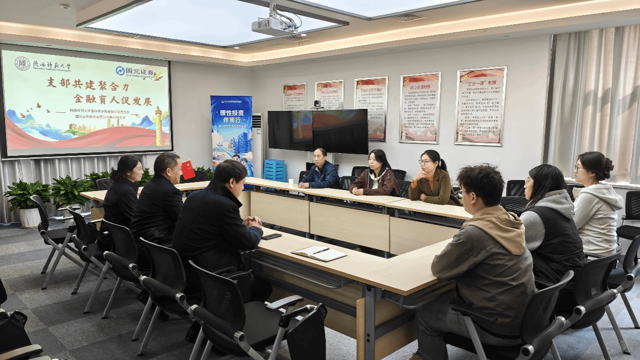 为深化校企合作,提升金融专业学生实践能力,并促进党建与业务融合,2025年11月3日,我院金融系曹培慎、李淑娟、霍源源三位教师带领2022级学生代表前往国元证券陕西分公司开展支部共建活动。