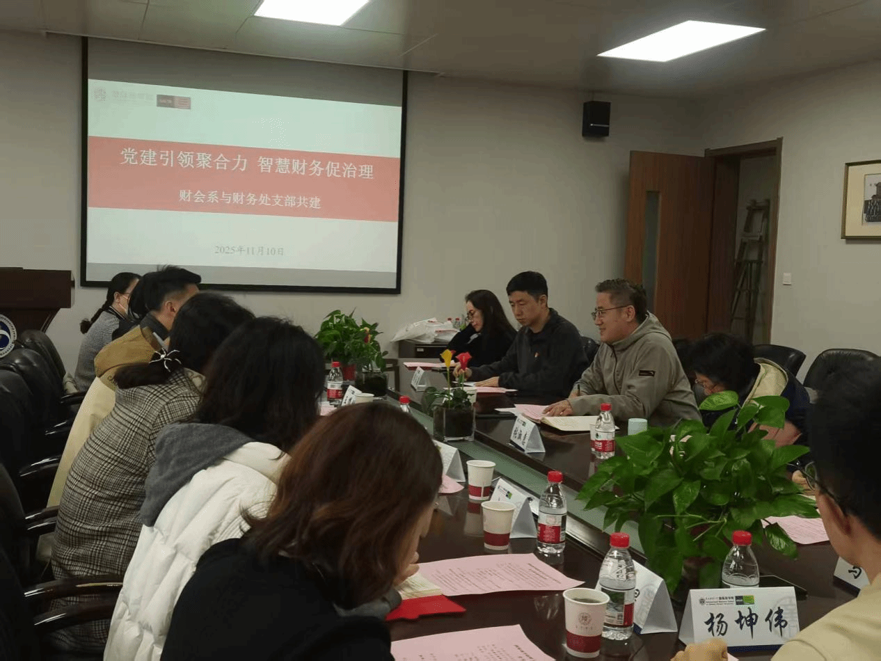 为深化基层党组织建设,推动党建与业务双向融合,2025年11月10日上午,国际商学院财务与会计系党支部与学校计划财务处党支部在文澜楼1329会议室共同开展“党建引领聚合力,智慧财务促治理”主题共建活动。活动由财务与会计系党支部书记郭玉晶主持,学院党委书记思培峰、副院长张淑惠及支部党员教师积极参与。