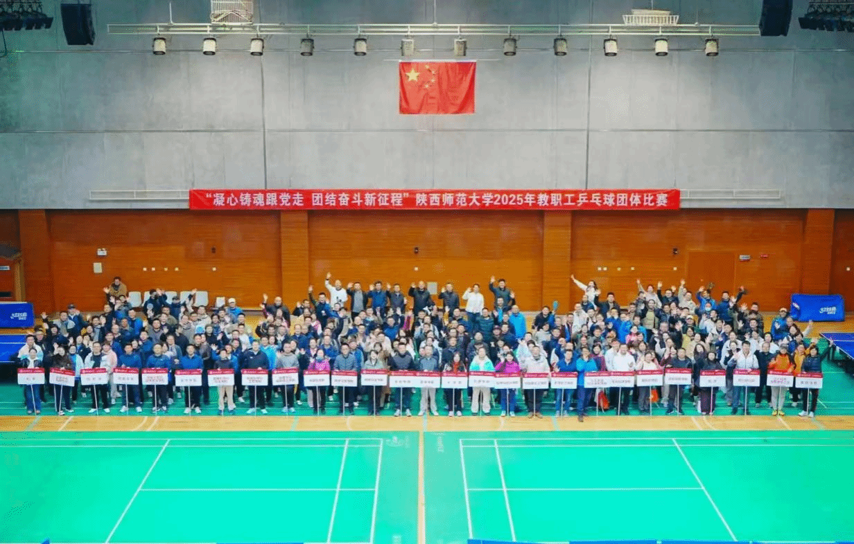 11月8日,陕西师范大学2025年教职工乒乓球团体赛在雁塔校区综合体育馆成功举办。本次比赛以“凝心铸魂跟党走 团结奋斗新征程”为主题,吸引了来自全校27个部门工会的28支代表队,共计330名运动员及50余名裁判员齐聚一堂,共同参与这场精彩纷呈的体育盛会。校党委副书记卢胜利出席活动。
