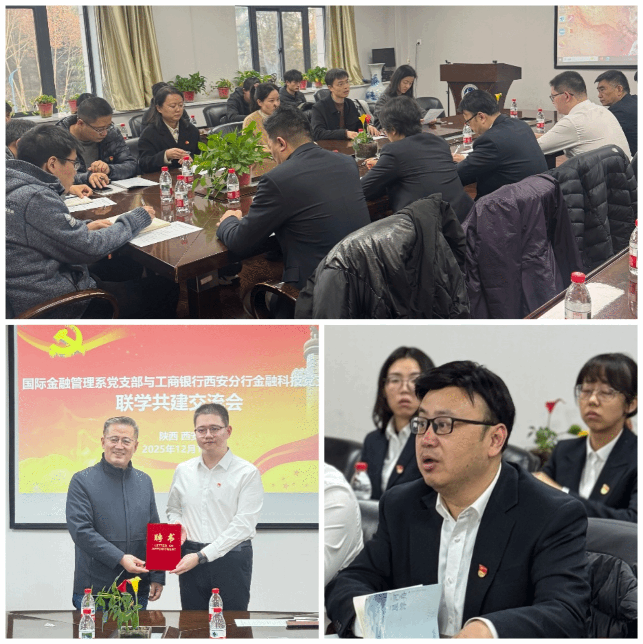 12月11日下午,为贯彻落实党的二十届四中全会精神,积极响应国家教育数字化转型与金融强国战略需求,国际金融管理系党支部与工行西安分行金融科技党支部在文澜楼1329会议室开展联学共建活动。双方支部党员及数量金融创新班部分学生党员参加活动。